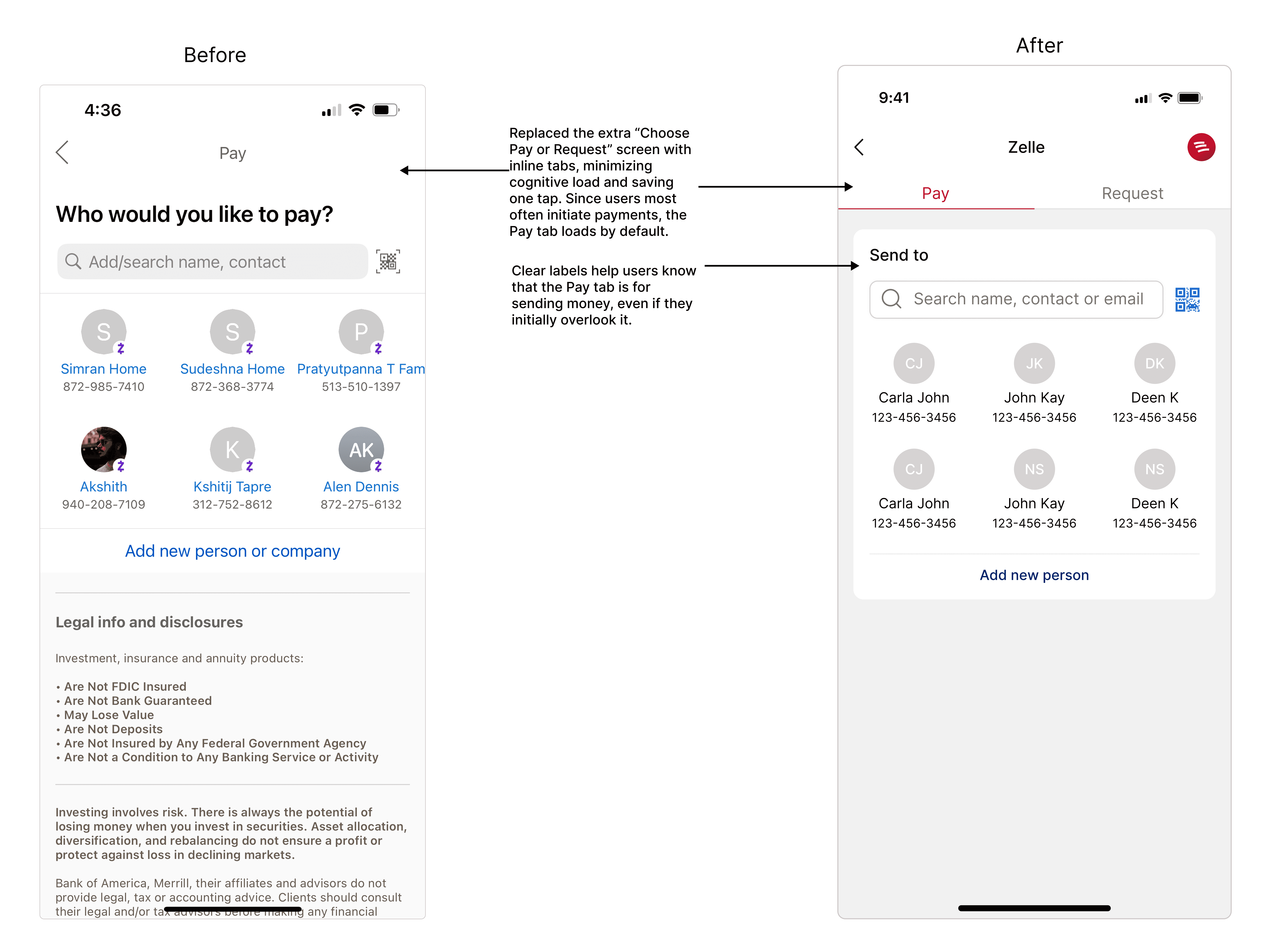As a long-time user of the Bank of America app, sending money through Zelle is something I do often. But one day, a simple transfer made me pause—it took 57 seconds, nearly 10 taps, and multiple repetitive screens just to send cash to a friend.